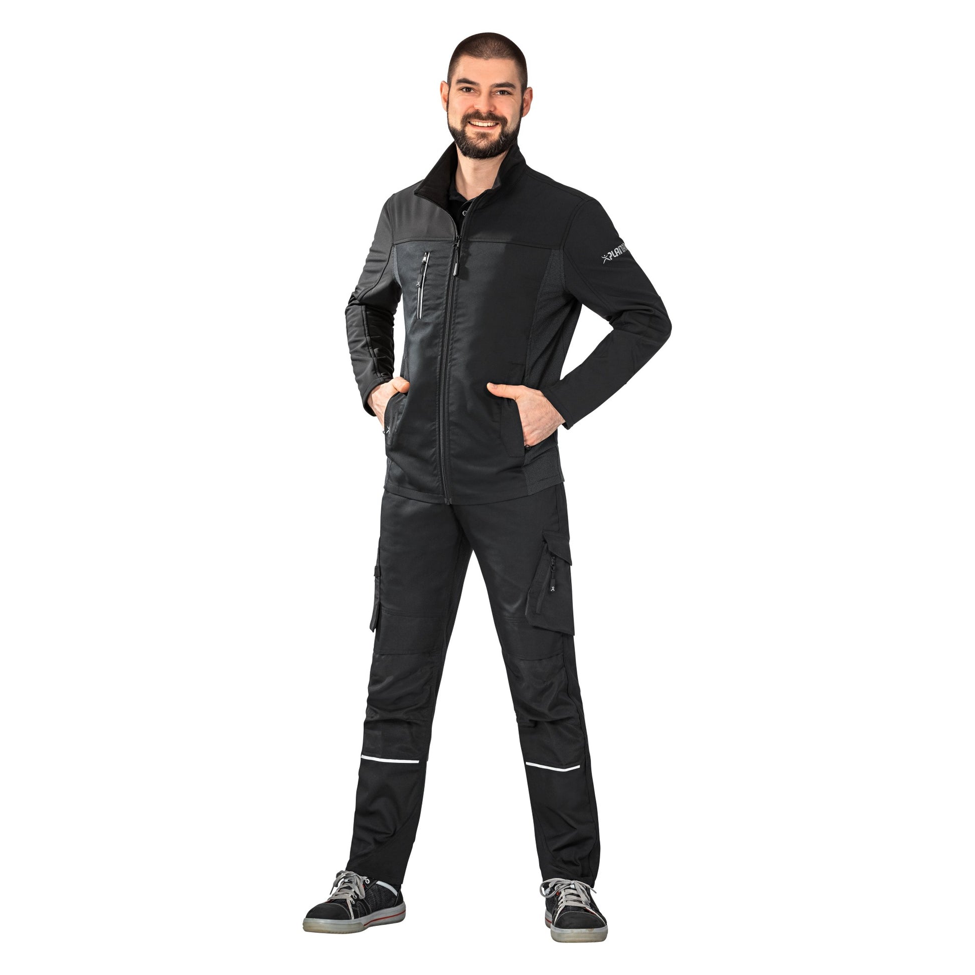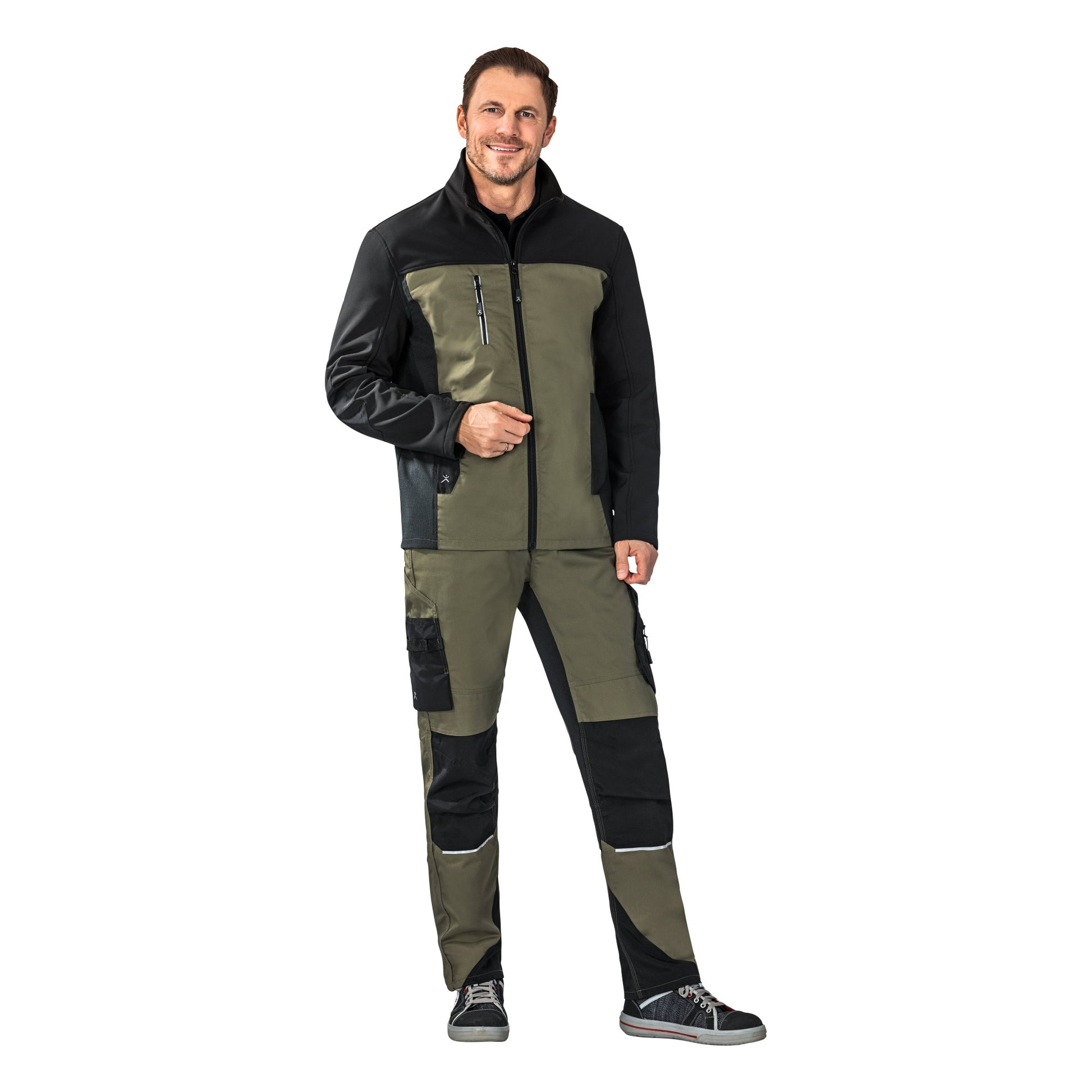- Strapazierfähiges Hauptgewebe (ca. 245 g/m²) mit Softshell-Kontrastmaterial