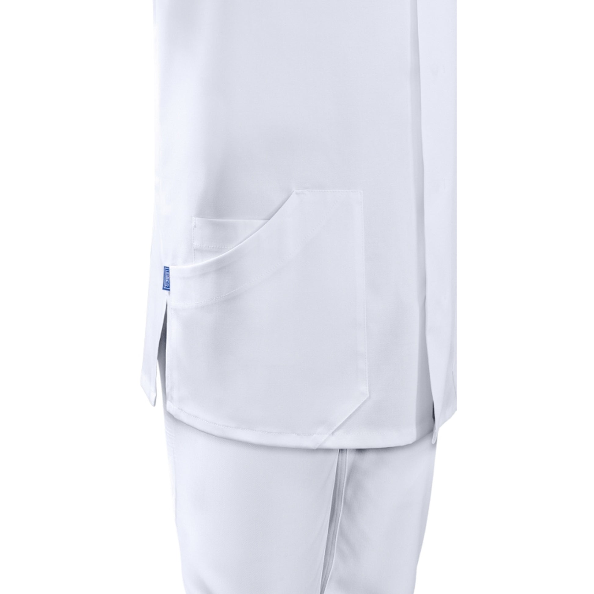 Dank der durchdachten Taschenlösung mit zwei abgeschrägten Seitentaschen – inklusive zusätzlicher Innentasche – sowie einer Brusttasche bietet der Kasack ausreichend Stauraum für Arbeitsutensilien. Seitenschlitze erhöhen den Tragekomfort und ermöglichen optimale Bewegungsfreiheit bei allen Tätigkeiten.